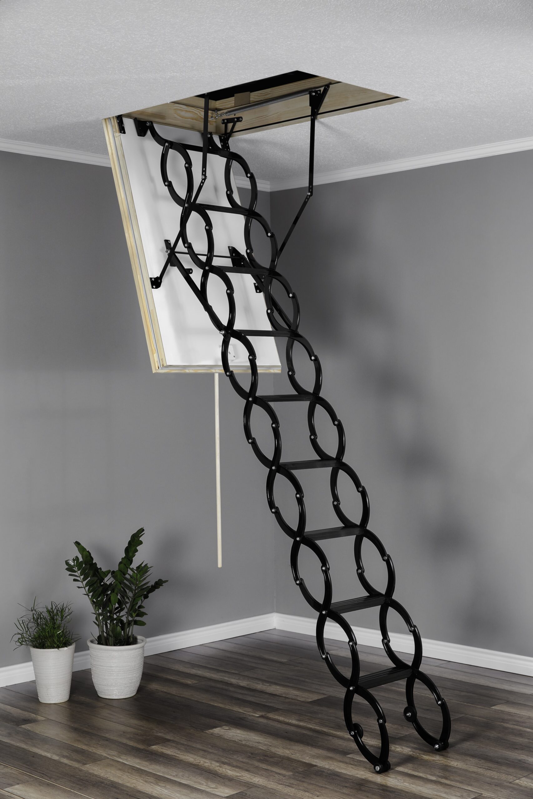 Для більш легкого комфортного відкривання в робоче положення, у ножичних моделей, на відміну від інших, у конструкції сходів встановлені дві пари пружин, одна в коробі, а друга пара кріпиться до самих сходів, що робить опускання та підйом сходів значно легшим!
