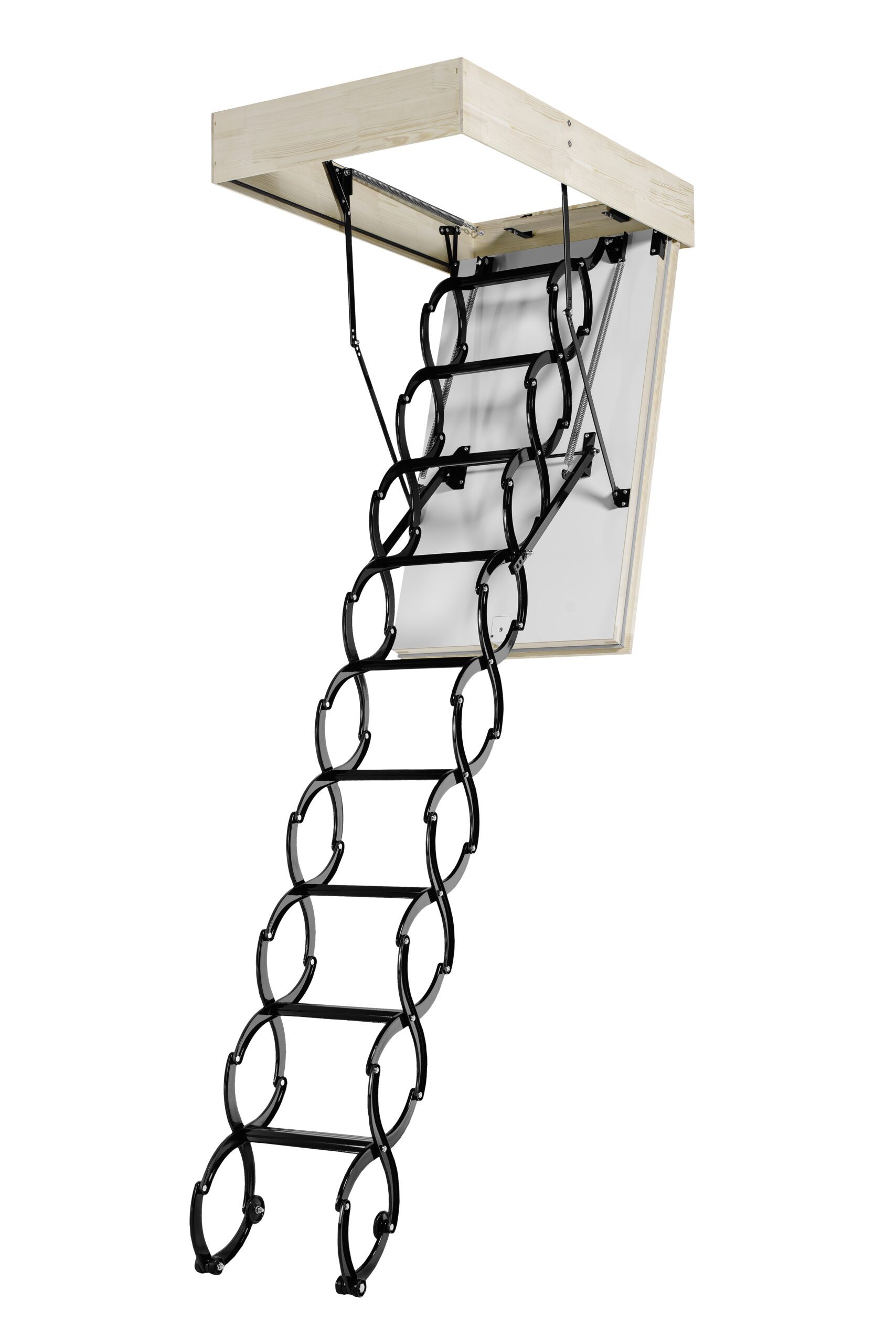 Сходи на горище FLEX відрізняються від усіх інших сходів саме конструкцією і на відміну від інших, в яких 3 або 4 секції, в цих сходах їх десять, кожна з яких складається з двох Х-схрещених металевих елементів, що зовні нагадують ножиці, а звідси й назви групи таких сходів – ножичні.
