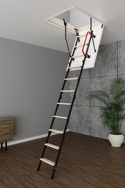 Идеальны для ограниченных пространств благодаря системе складывания под потолок. Каркас изготовлен из прочной оцинкованной стали, а ступени выполнены из качественной древесины. Механизм раскладывания обеспечивает плавность движения и фиксацию в рабочем положении.
