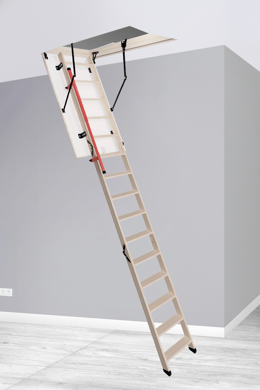 Чердачные лестницы LONG 330 EXTRA — это практичное решение для комфортного и безопасного доступа на чердак в помещениях с высотой потолка до 330 см. Модель оснащена деревянною трехсекционной лестницей, которая обеспечивает удобство пользователя и стабильность во время подъема.